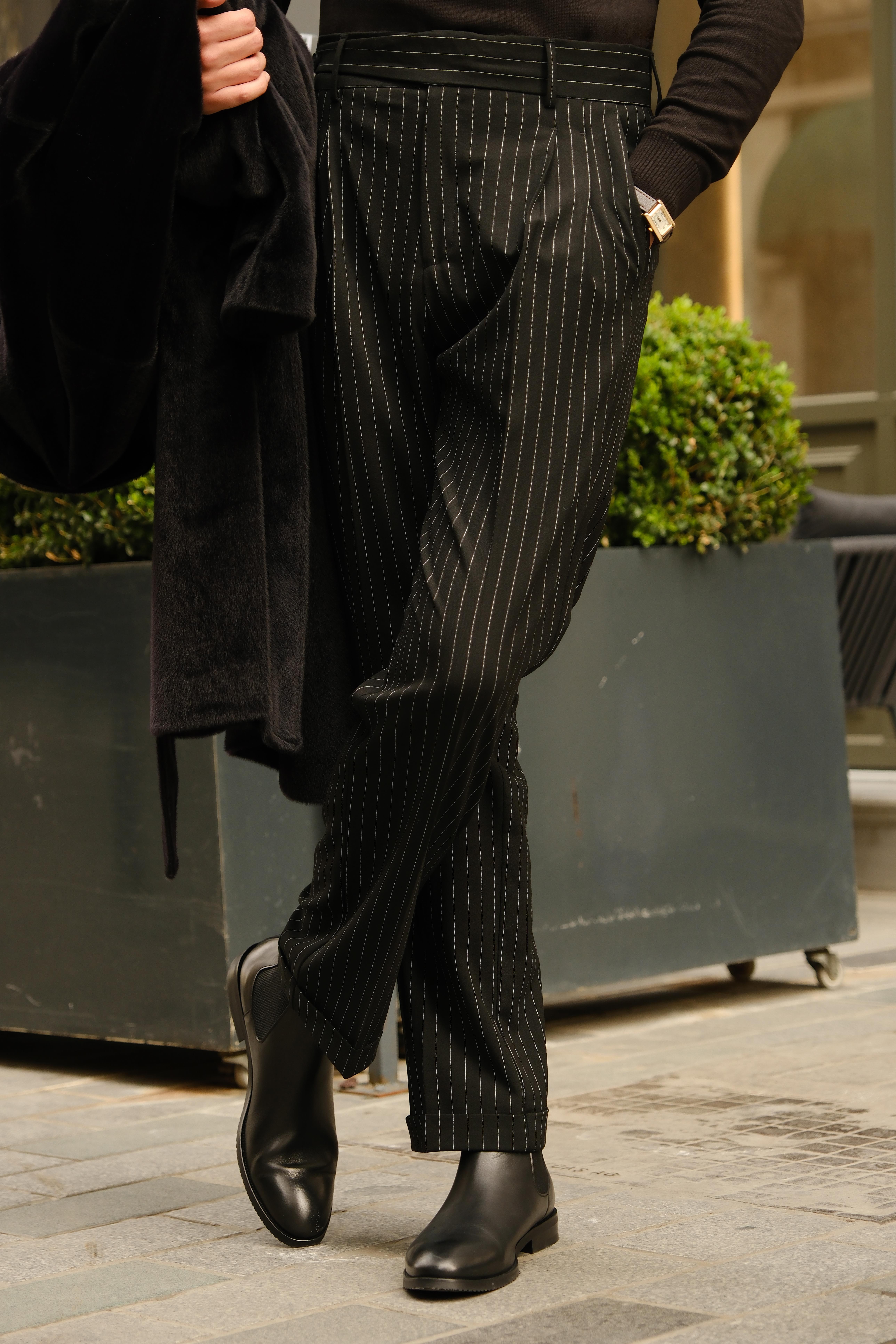 İtalyan Tarz Siyah Relax Fitt Çift Pileli Kemer Detay Yüksek Bel Pantolon